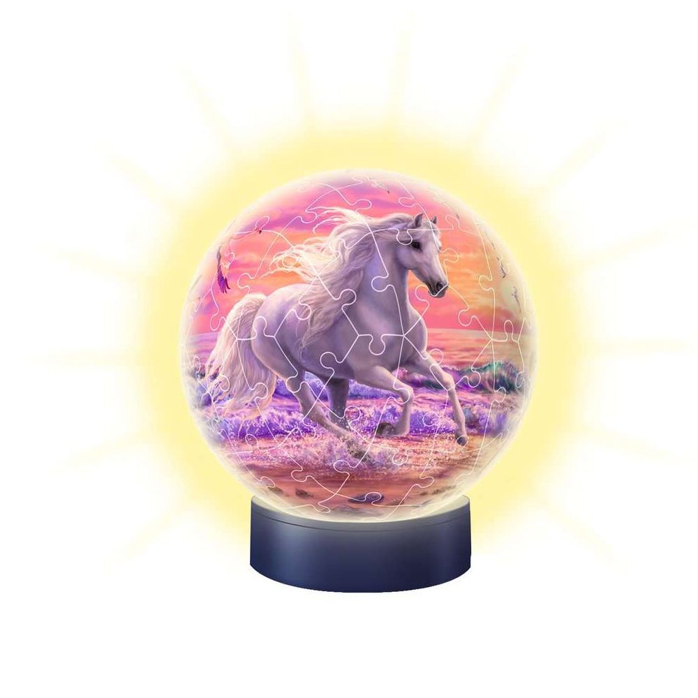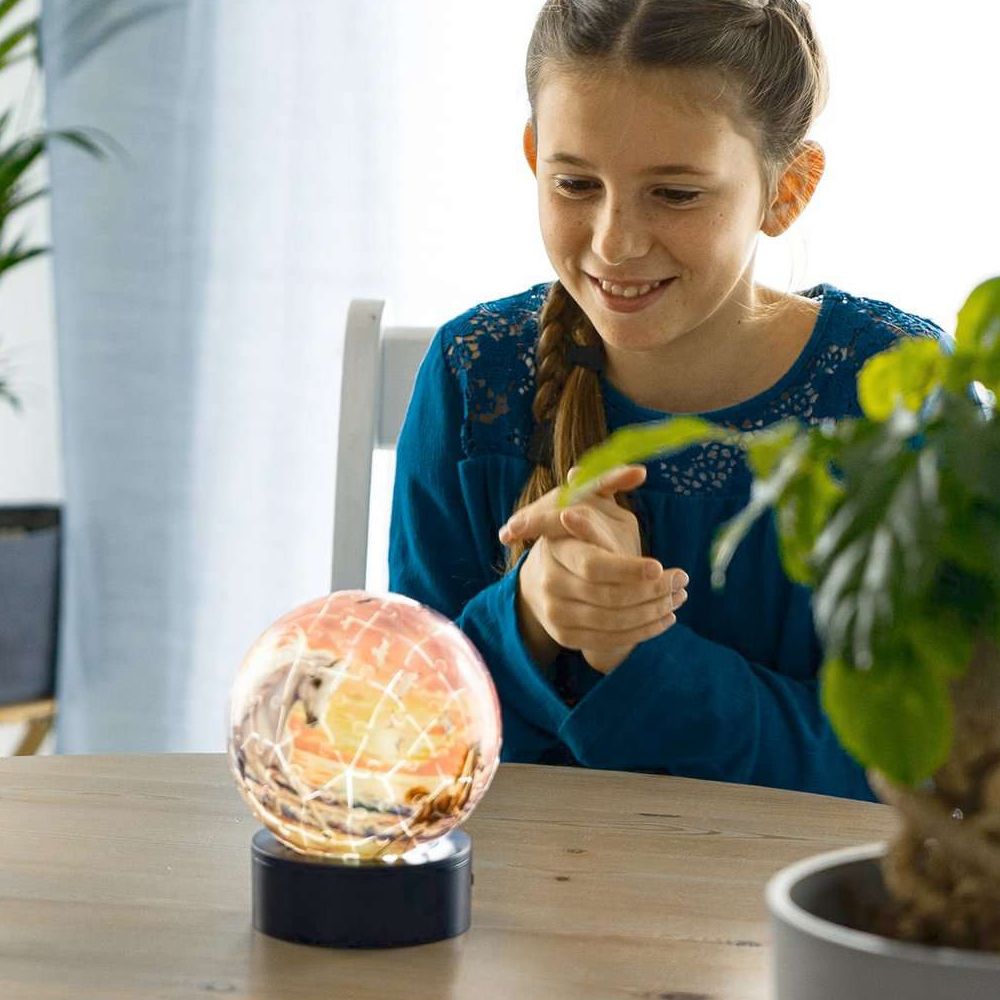 Dieser 3D Puzzle-Ball im coolen Pferde-Design wird mit einem Händeklatschen zum außergewöhnlichen Nachtlicht, wenn der Leuchtsockel den Ball von innen erstrahlen lässt.