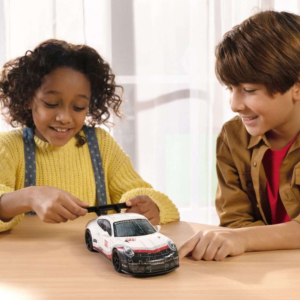 Fahren Sie nur noch Siege ein! Mit dem 3D Puzzle Porsche 911 GT3 Cup! Lust auf sportliche Höchstleistungen? In einem Rennfahrzeug, das zu den absoluten Sportwagenikonen gehört? Dann gehen Sie mit diesem Modell am besten direkt auf die Rennstrecke und geben ordentlich Gas – denn hier kommt Ihr persönlicher 911er der siebten Generation! Jetzt mit stabiler Innenkonstruktion! Porschefans, Rennwagenliebhaber und Autofreunde haben allen Grund zur Freude – denn mit diesem Fahrzeug geht eines der bekanntesten sportiven Rennmodelle an den Start. Die originalgetreue Umsetzung des großen Bruders beeindruckt in diesem 3D Modell nicht zuletzt auch durch den dazugehörigen Heckspoiler. Die 108 individuell geformten Puzzleteile passen dank EasyClick Technology perfekt zusammen und formen ganz ohne Kleben ein stabiles dreidimensionales Abbild des Hochleistungsfahrzeugs. Damit ist der Puzzlespaß für kleine und große Rennfahrer zwischen 8 und 99 Jahren vorprogrammiert – der mithilfe einer bebilderten Anleitung und einer soliden Innenkonstruktion zur unbeschwerten Freude wird. Und auch die mitgelieferten Zubehörteile sorgen dafür, dass der Rennspaß sogar im Stand mit jeder Runde aufs Neue beginnt.