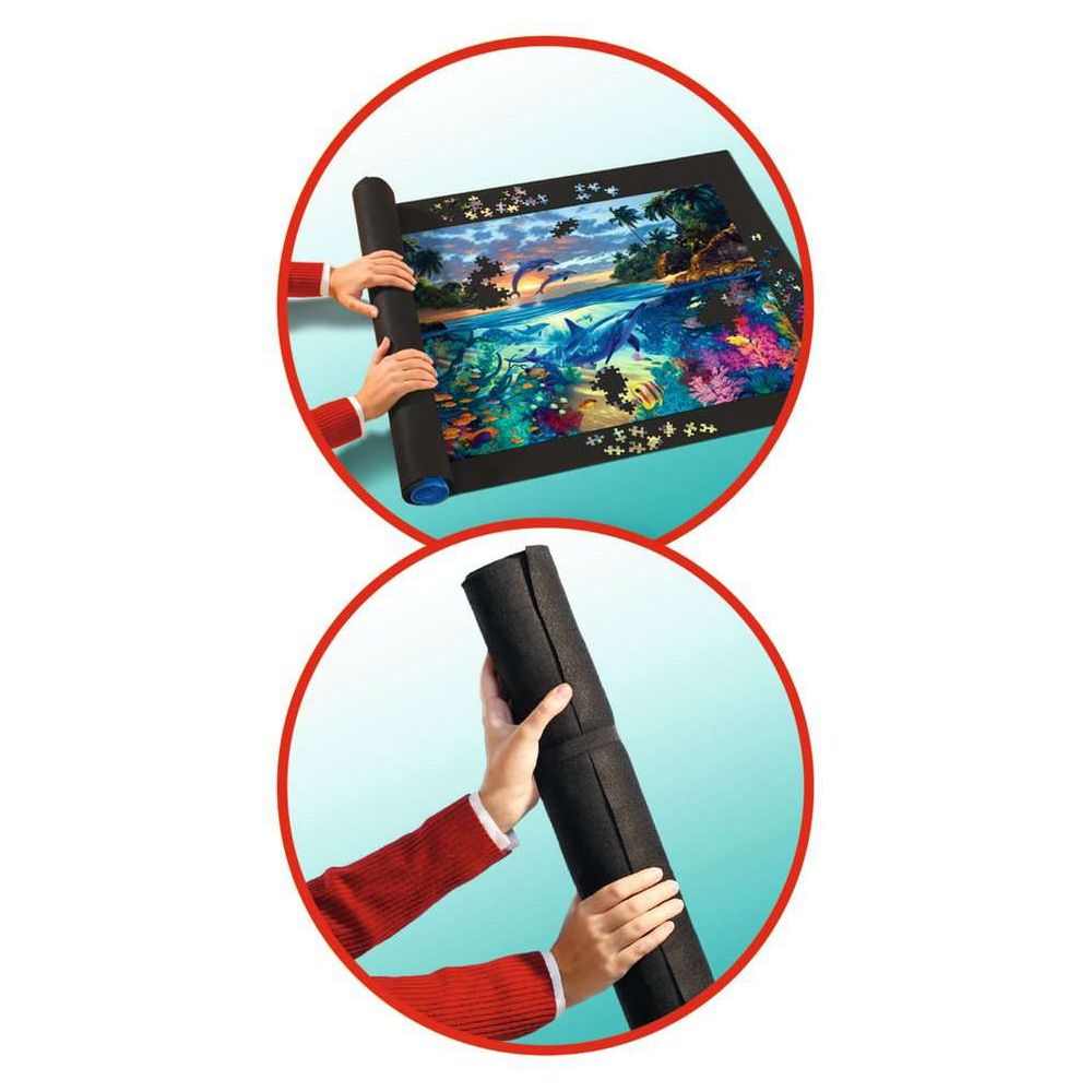 Das praktische Aufbewahrungssystem Puzzle Roll & Go von Ravensburger macht Puzzeln superkomfortabel und vor allem: mobil! Eine rutschfeste Filzmatte dient als Puzzleunterlage, die anschließend samt Puzzle um eine stabile Röhre gewickelt und mit zwei Gummibändern befestigt wird. So können angefangene oder fertige Puzzles mit 300 bis 1500 Teilen platzsparend verstaut und sicher transportiert werden. Für schöne Puzzlestunden zu Hause oder unterwegs.