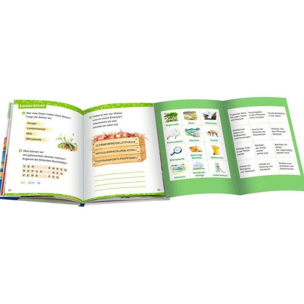 Wie essen wir umweltfreundlich? Wieso wärmt sich die Erde auf? Was ist erneuerbare Energie? All das finden kleine Leserinnen und Leser hier Zeile für Zeile selbstständig heraus. Mit Hilfe einfacher, kurzer Texte erfahren sie, warum die Umwelt unseren Schutz braucht und was wir alle gemeinsam bewirken können. Anschauliche Illustrationen und Fotos unterstützen dabei. Und für jede Menge Spaß sorgen Sticker, ein Spiel und viele Rätsel.