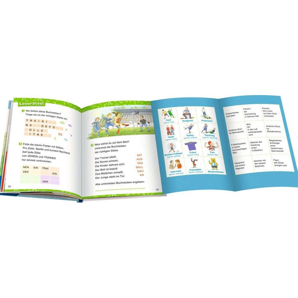 Fußball begeistert nicht nur im Fernsehen, sondern auch in der Freizeit – egal ob im Verein oder auf der Wiese. Welche Schusstechnik ist die beste? Wie werde ich zum Fußballstar? Welche ist die beste Mannschaft der Welt? All das finden Erstleser ab dem 2. Lesejahr mit diesem Band selbstständig heraus. Einfache, kurze Texte machen das Selberlesen kinderleicht. Und dank abwechslungsreicher Buchstaben- und Kreuzworträtsel, Suchaufgaben, Sudokus und Stickern gelingt das Lesenüben spielerisch.