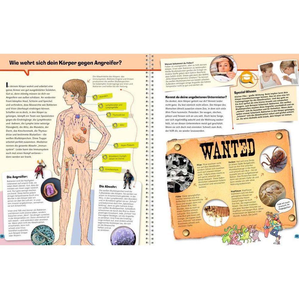 Der menschliche Körper ist ein wahres Wunderwerk und gibt uns immer wieder Rätsel auf: Warum ist unsere Haut wasserdicht? Wieso knurrt der Magen, wenn wir Hunger haben? Warum sehen wir unseren Eltern ähnlich? Neben spannendem Sachwissen bietet dieses Buch einfache Experimente, mit deren Hilfe Kinder ab 8 Jahren den Geheimnissen ihres Körpers auf die Spur kommen können – zum Beispiel indem sie ihre eigene DNA sichtbar machen. Große Ausklappseiten gewähren faszinierende Einblicke ins Innere des Menschen und zeigen den Aufbau von Skelett, Muskeln und verschiedenen Organen.