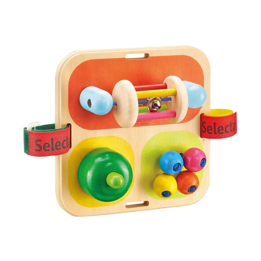 Glöckchen klingeln, klappern, hupen - all das kann das kleine Activity-Center. Leicht zu befestigen, bietet das Mini-Erlebniscenter mobilen Spielspaß am Bettchen oder Krabbelgitter und fördert erste motorische Fähigkeiten des Kindes.