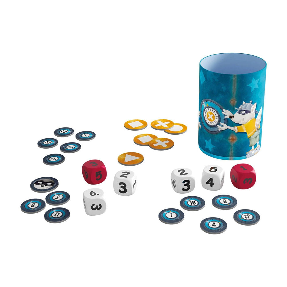 Durch geschicktes Würfeln versuchen die Spieler:innen als Waschbären, den Code des großen Safes zu knacken. Wer zuerst alle seine Zahlen in den Safe eingegeben hat, gewinnt.