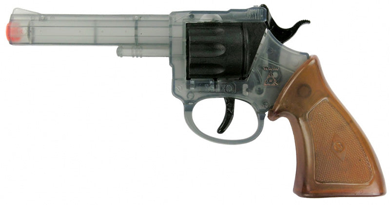 ca. 20 cm, Kunststoff transparent mit braunem Griff somit unterscheidet sich dieser Spielzeugrevolver von einem echten. Liferung auf Blisterkarte. Zu diesem Rode Spielzeugrevolver passt die 100-Schuss Munition von Sohni-Wicke.