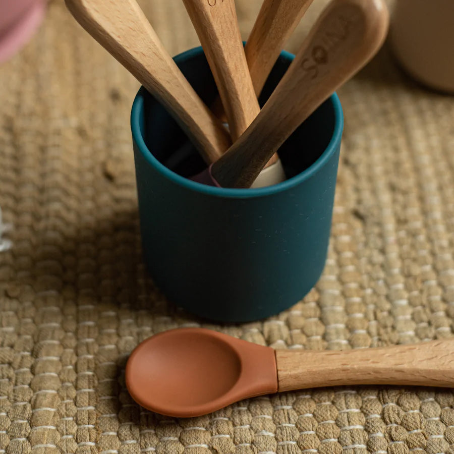 SOINA Silikonlöffelset mit Bambusgriff, midnight blue/ivory