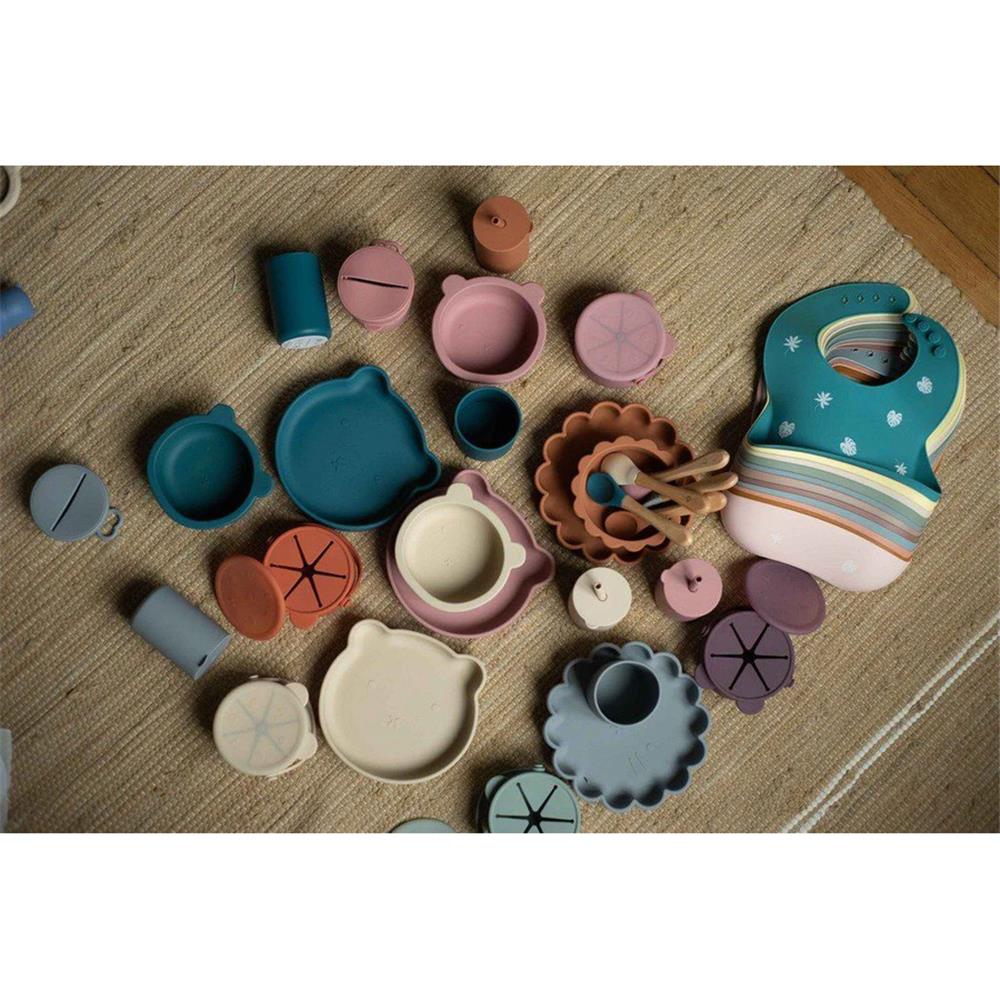 Es besteht aus hochwertigem Silikon und ermöglicht Ihrem Baby gefahrloses Essen. Seine ergonomische Form ermöglicht es Ihrem Baby, alleine zu essen. Die Schüsseln speichern keine Wärme und es besteht keine Verbrennungsgefahr für Ihr Baby.