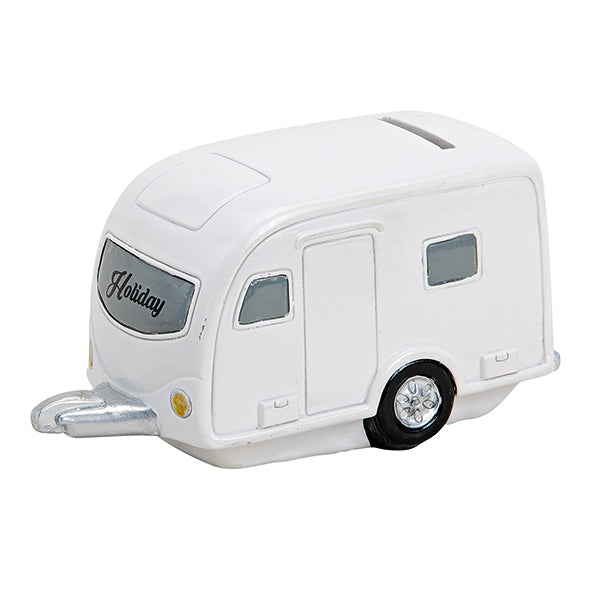 Spardose Wohnwagenanhänger aus Polyresin.