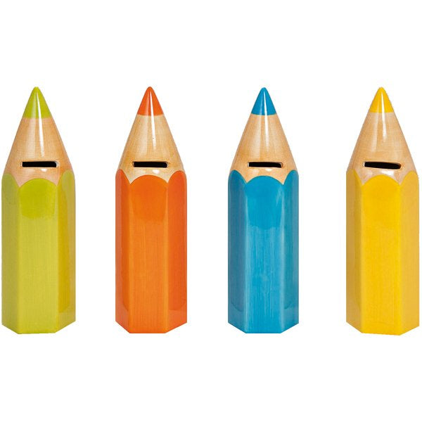 Diese originelle Sparkasse aus Keramik ist ein super Geschenk. Die Buntstifte sind bunt bemalt und in 4 verschiedenen Farben erhältlich.