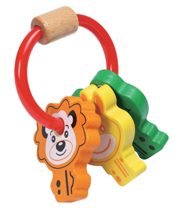 Sehr schön verarbeitetes Holzspielzeug aus stabiler Buche. Die Kinder lieben es mit den Schlüsseln der Eltern zu spielen. Diese herzigen Tischlüssel sind ein perfekter Spielzeugersatz der richtigen Schlüssel.