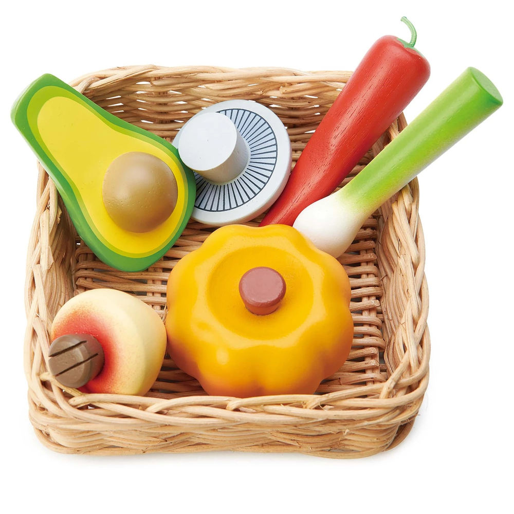 Eine Auswahl an Gemüse zum Spielen. Produktgröße: 15,5x15,5x5,5 cm.