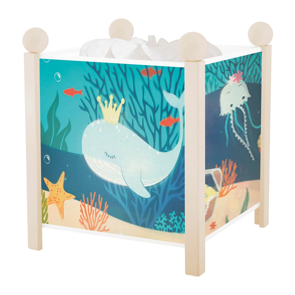 Die Magische Laterne ist ein traditionelles Nachtlicht, das von einer sehr alten japanischen Tradition inspiriert wurde. Es beruhigt die Kinder, so dass sie leicht einschlafen. Eingeschaltet entwickelt die Glühbirne aufsteigende Wärme. Diese lässt den bebilderten Zylinder wie von Zauberhand sanft rotieren. Das Nachtlicht wird gebrauchsfertig geliefert. Legen Sie die zylindrische Folie auf eine Metallöse, die sich auf dem Schutzkorb um die Glühbirne befindet. Die 10W Niedervolt-12V-Glühbirne (Sockel E14) wird mit der Laterne geliefert (Lebensdauer größer als 2000h).