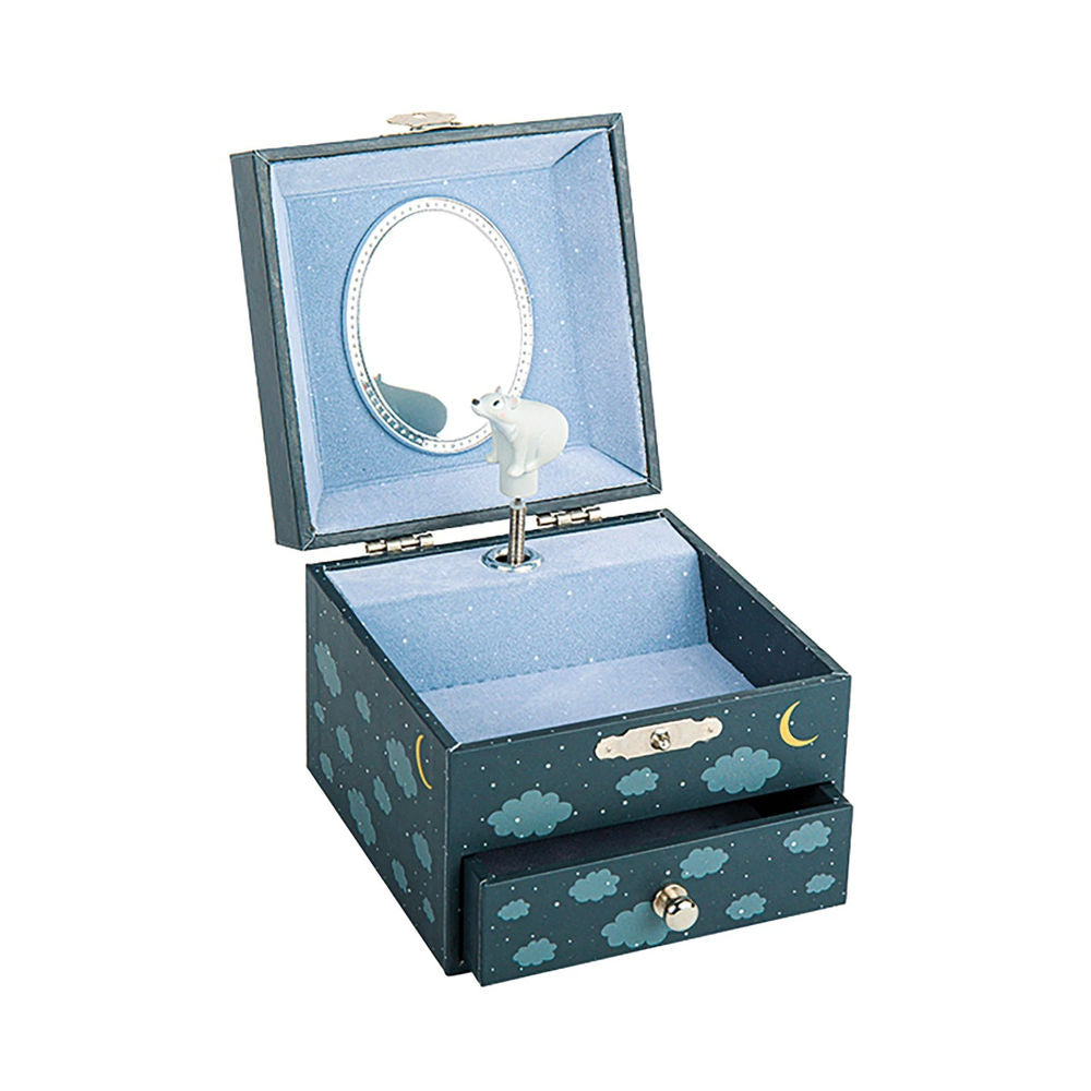 Eine Musikbox zur Aufbewahrung kleiner Schätze & Geheimnisse. Mit einer kleinen Schublade Betätigen Sie die Kurbel und die Figur erwacht zum Klang der Musik wie von Geisterhand zum Leben! Ideal ab der Geburt: schöne zeitlose Dekoration eines Kinderzimmers und Einführung in die klassische Musik.