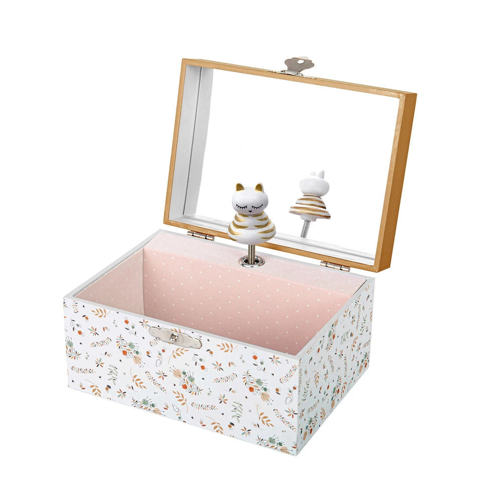 Eine Musikbox zur Aufbewahrung kleiner Schätze & Geheimnisse. Betätigen Sie die Kurbel und die Figur erwacht zum Klang der Musik wie von Geisterhand zum Leben! Ideal ab der Geburt: schöne zeitlose Dekoration eines Kinderzimmers und Einführung in die klassische Musik.