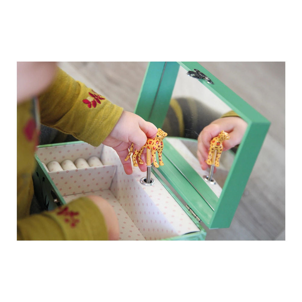 Eine Musikbox zur Aufbewahrung kleiner Schätze & Geheimnisse. Mit einer mittleren Schublade Betätigen Sie die Kurbel und die Figur erwacht zum Klang der Musik wie von Geisterhand zum Leben! Ideal ab der Geburt: schöne zeitlose Dekoration eines Kinderzimmers und Einführung in die klassische Musik.