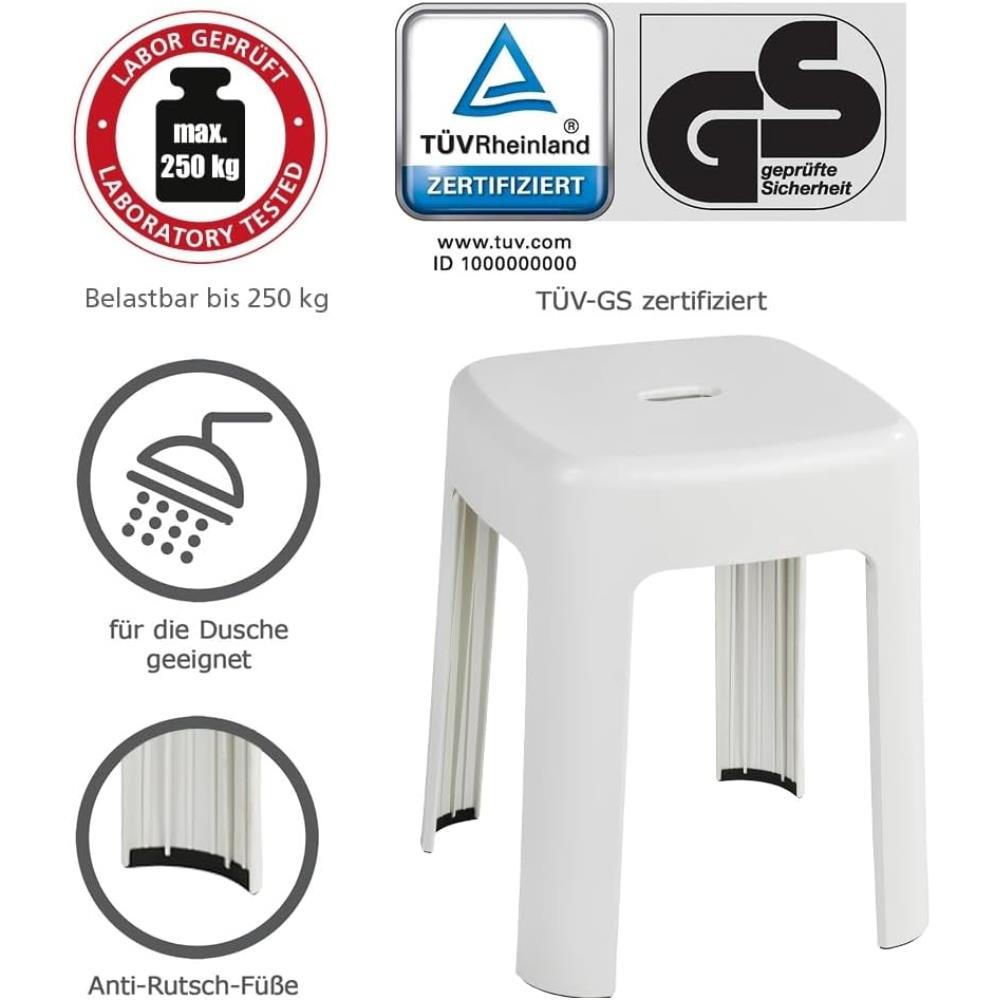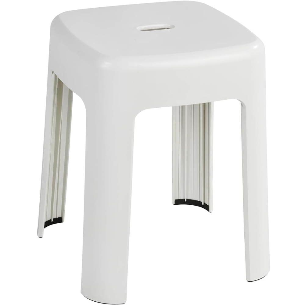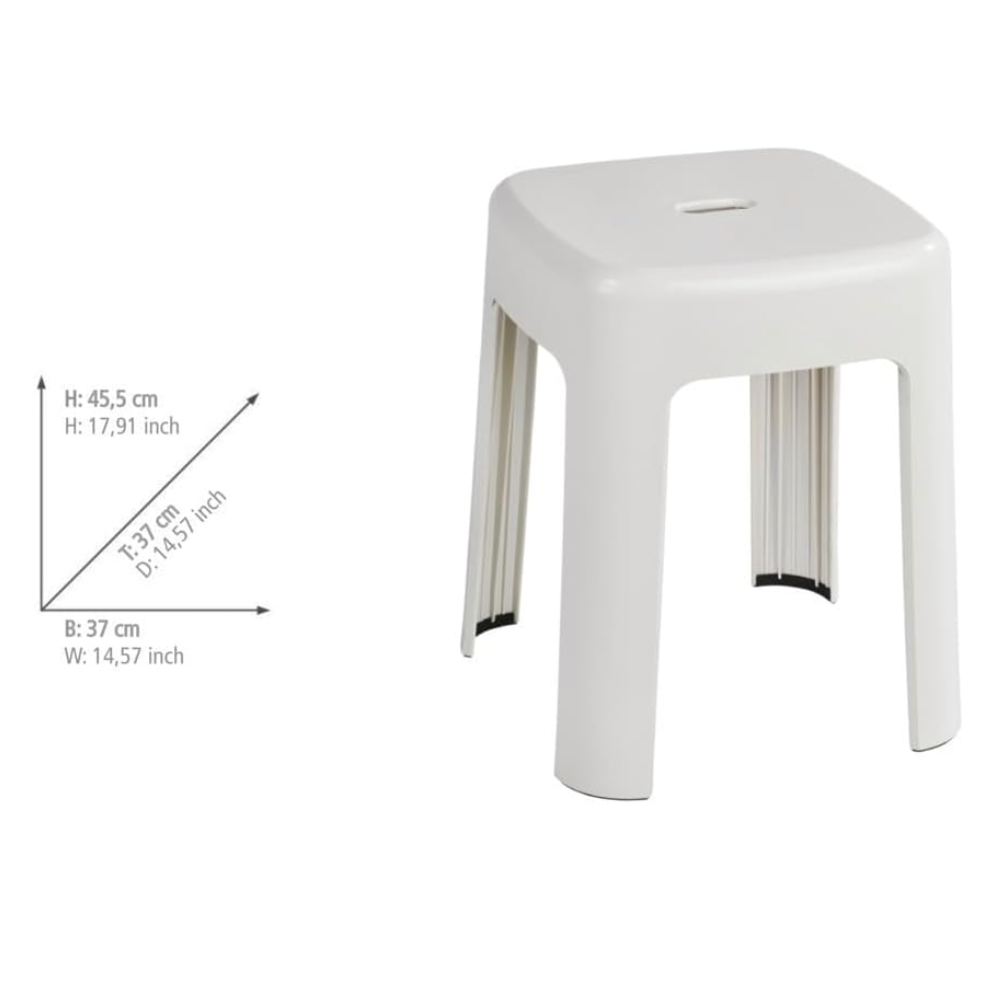 Badhocker in modernem Design. Schwere, stabile Qualität aus Kunststoff. Der Hocker kann auch in der Dusche verwendet werden. Mit Griffloch zum Ablauf von Wasser. Sicherer Stand durch Anti-Rutsch Füße. 37 x 37 x 45.5 cm
